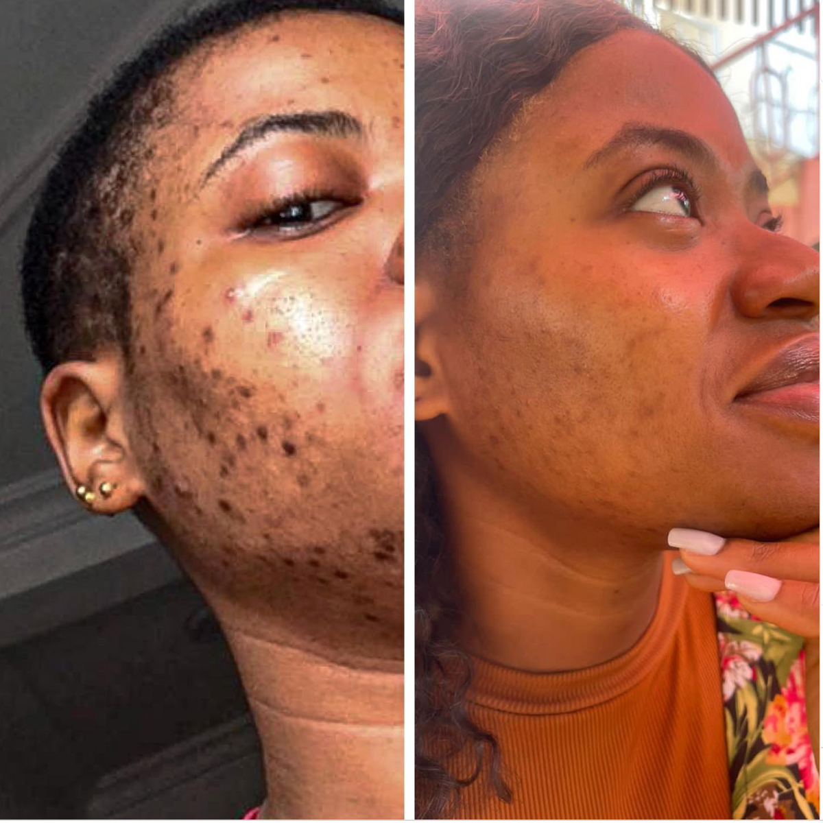 Our natural blend, removes, acne, dark spots, and hyperpigmentation, leaving your skin glowing.